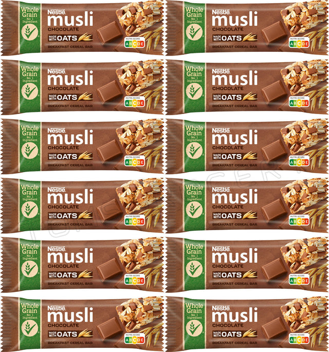 12 NESTLE MUSLI Chocolate Wholegrain Cereal Bars 35g 1.23oz