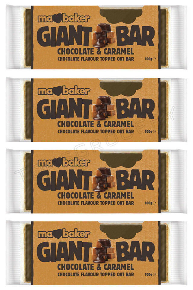 4 MA BAKER GIANT BAR Chocolate & Caramel Cereal Bars 100g 3.5oz is backordered and will ship as soon as it is back in stock.