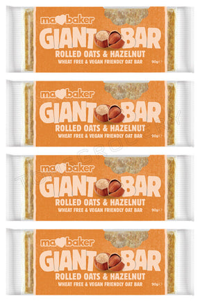 4 MA BAKER GIANT BAR Rolled Oats & Hazelnut Vegan Cereal Bars 90g 3.17oz