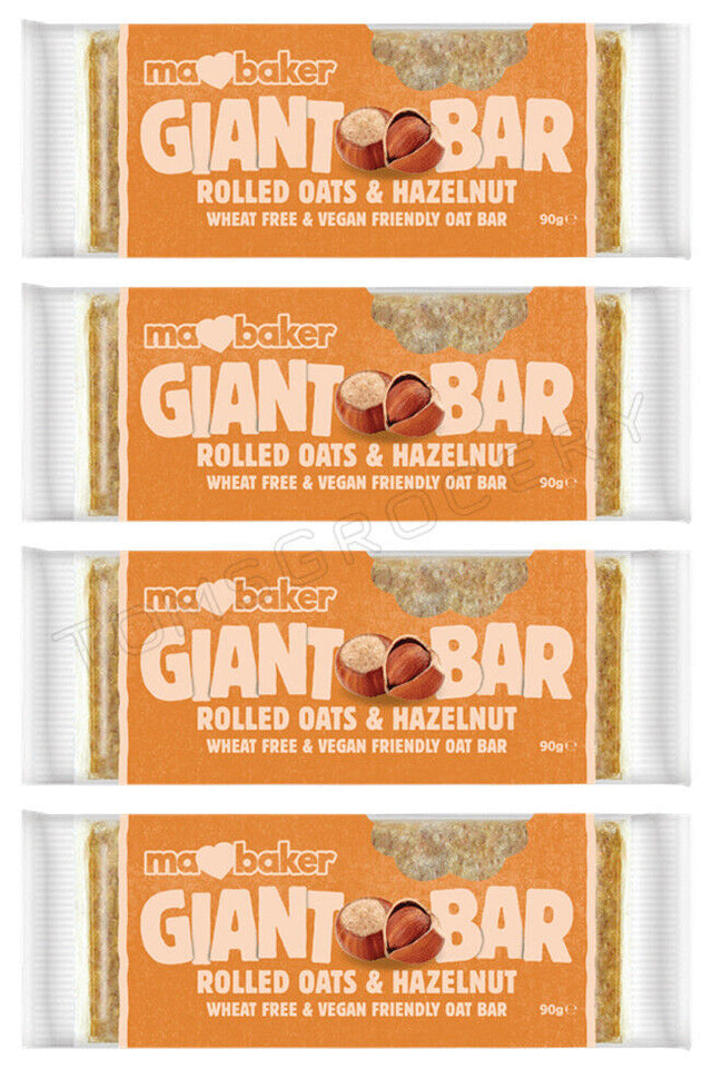 4 MA BAKER GIANT BAR Rolled Oats & Hazelnut Vegan Cereal Bars 90g 3.17oz is backordered and will ship as soon as it is back in stock.
