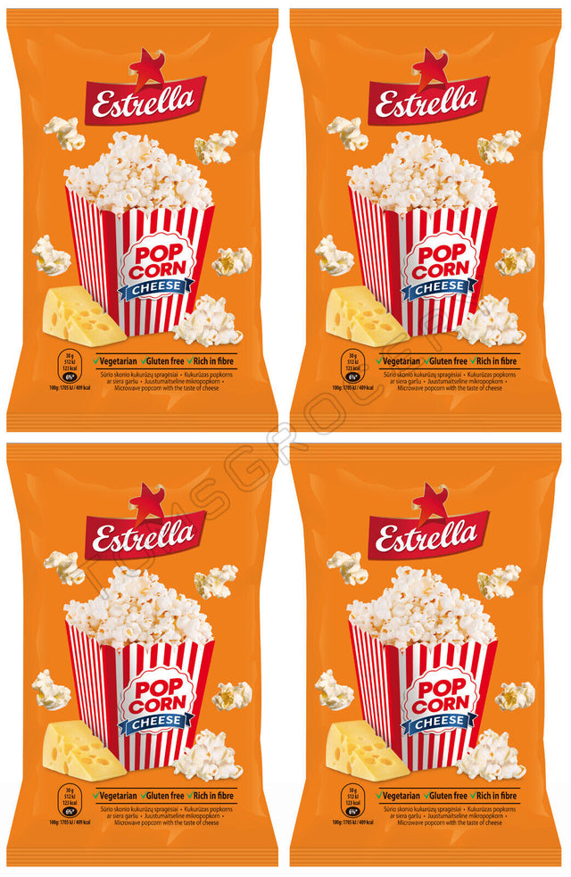 4 ESTRELLA POPCORN CHEESE Flavor Microwave Ready Bags 90g 3.18oz