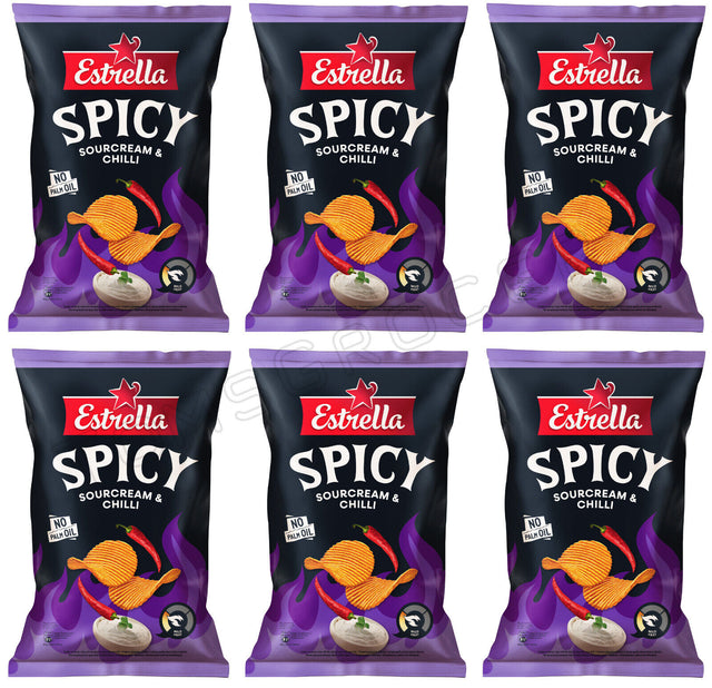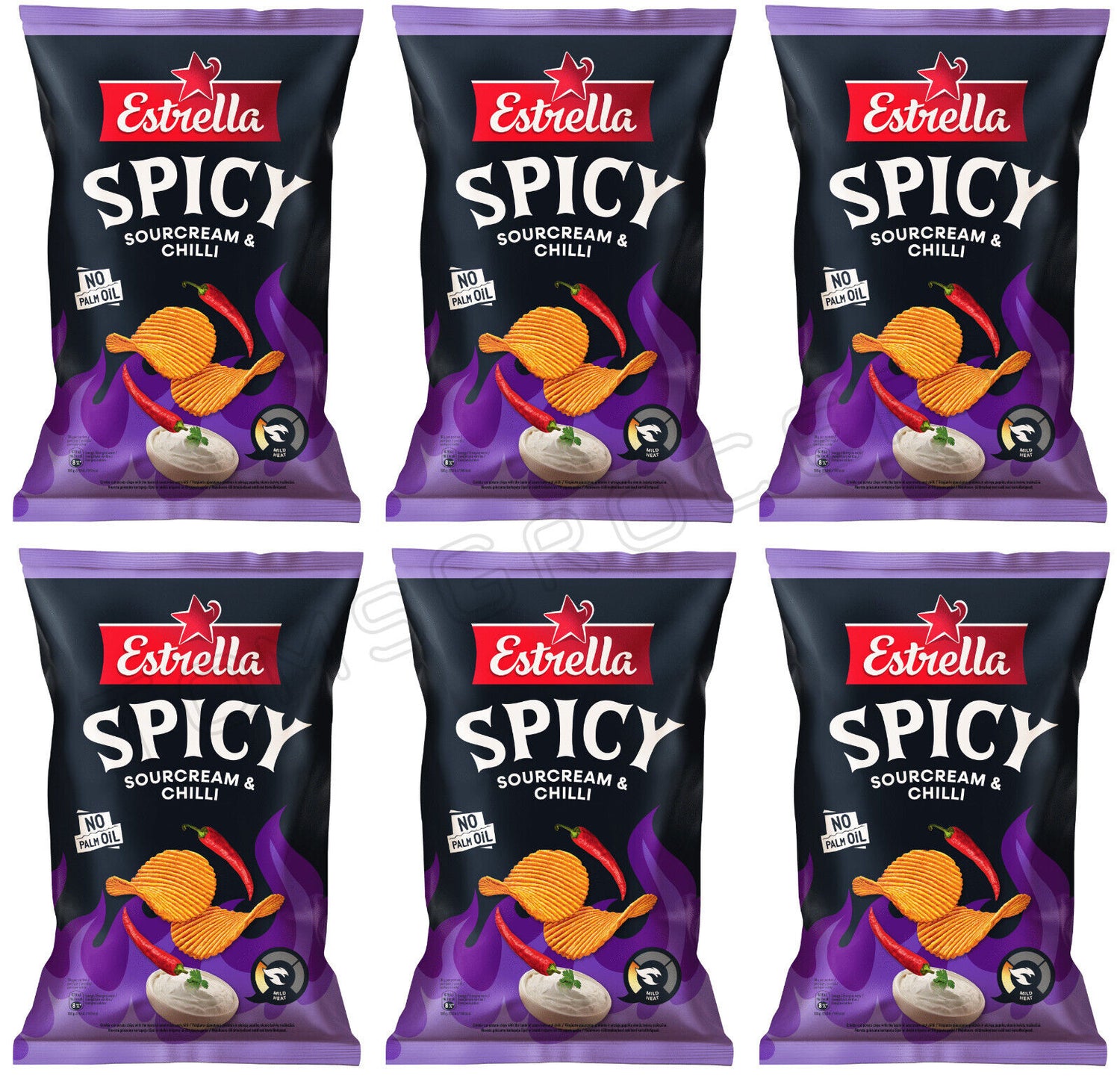 6 ESTRELLA SPICY Sourcream & Chilli Flavor Potato Chips 115g 4oz