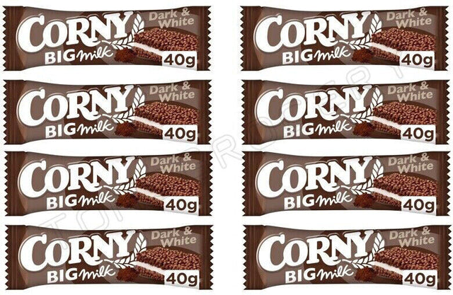 8 x CORNY BIG DARK & WHITE CHOCOLATE Healthy Energy Breakfast Cereal Bars 40g