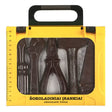 In a bright package that imitates a real toolbox, you will find 5 dark chocolate figures for crafters: a screwdriver, a wrench, pliers, a hammer and a saw. The chocolate contains at least 50% cocoa solids.