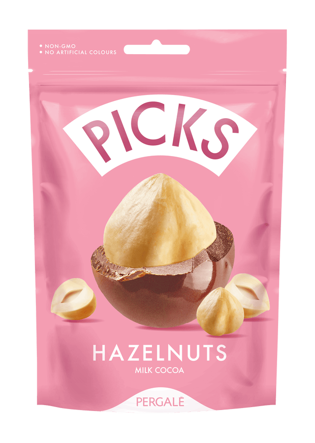 Some say it’s not the grand but small things that make us happy. And if that small thing is foresty and crunchy hazelnuts covered with milk cocoa glaze that melts in your mouth, being happier every day is so easy. Classic nut dragée PICKS does not contain any artificial coloring or GMOs.