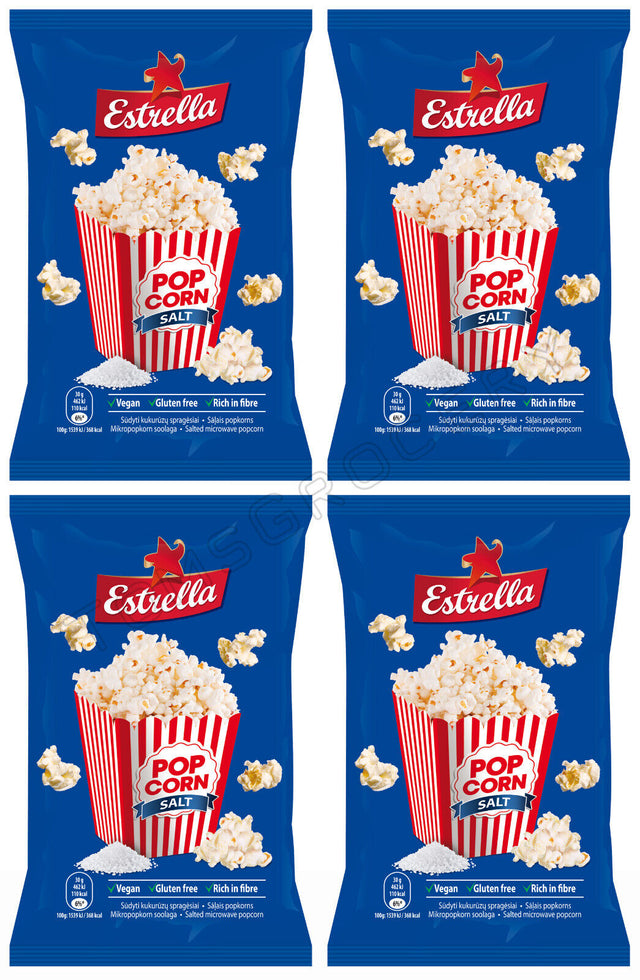 4 ESTRELLA POPCORN SALTED Flavor Microwave Ready Bags 90g 3.18oz