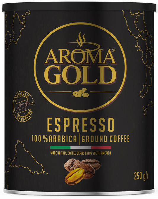 AROMA GOLD ESPRESSO Ground Coffee Medium Roast 100% Arabica Tin 250g 8.8oz