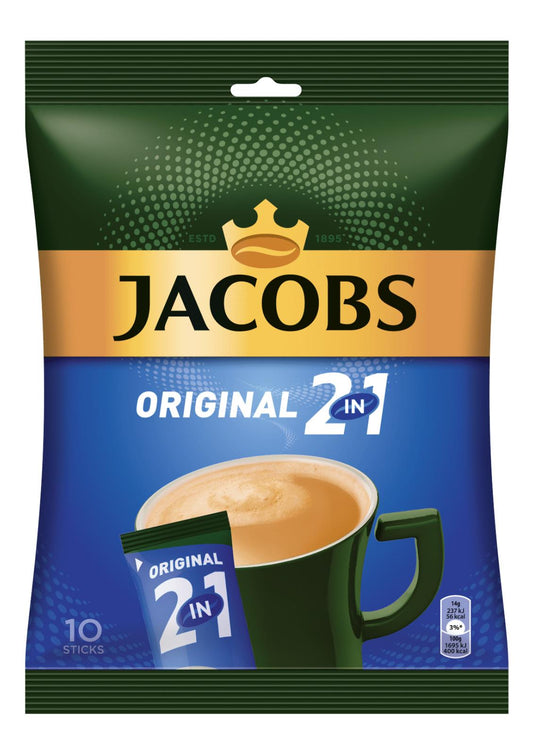 10 JACOBS Original 2in1 Instant Coffee Sticks Bags (100 servings total) 140g