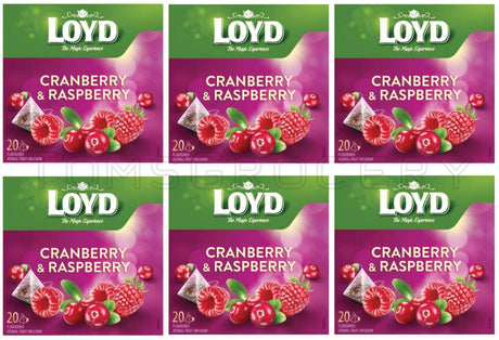 Very low stock (1 unit)$2399Unit priceUnavailable6 x LOYD CRANBERRY & RASPBERRY Flavor Fruit Tea Boxes (120 servings)