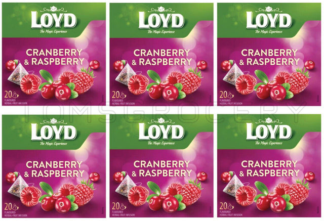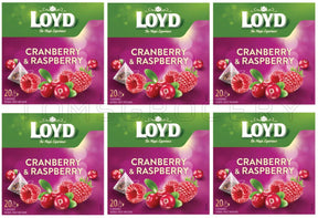 6 LOYD CRANBERRY & RASPBERRY Flavor Fruit Tea Boxes (120 servings)