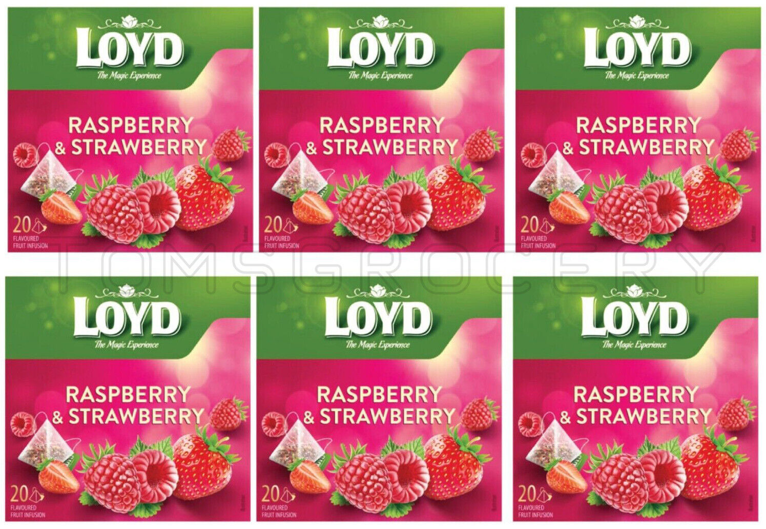 6 LOYD RASPBERRY & STRAWBERRY Flavor Fruit Tea Boxes (120 servings)