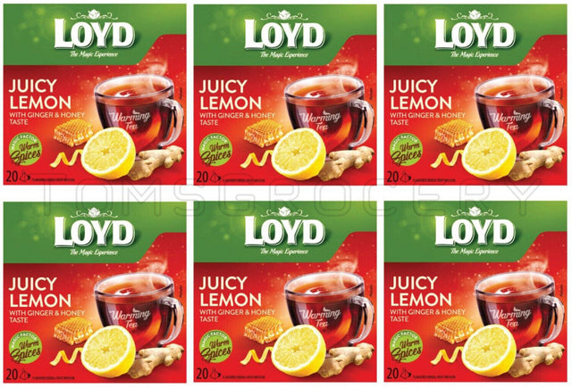 6 x LOYD JUICY LEMON with Ginger & Honey Flavor Fruit Tea Boxes (120 servings)