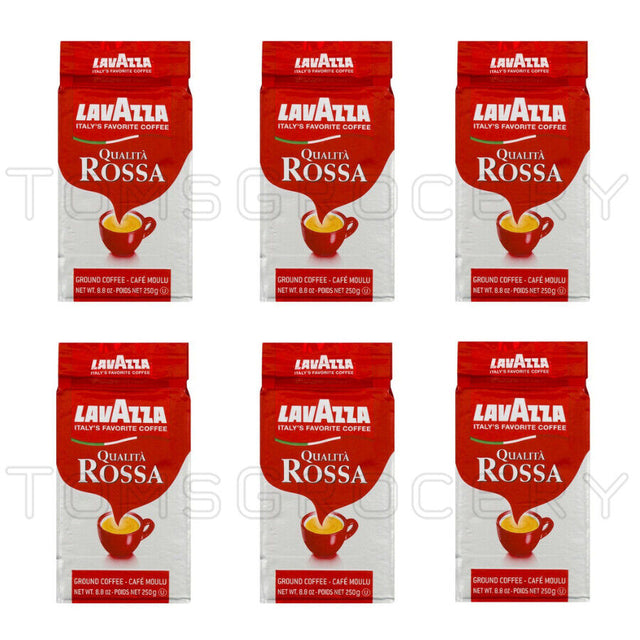 6 x LAVAZZA QUALITA ROSSA Rich & Full Bodied Premium Ground Coffee 250g 8.8oz