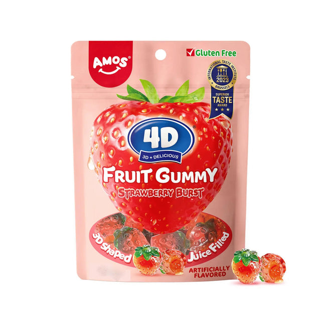 AMOS 4D Fruit Gummy Strawberry Burst Flavor Gummi Candies 65g