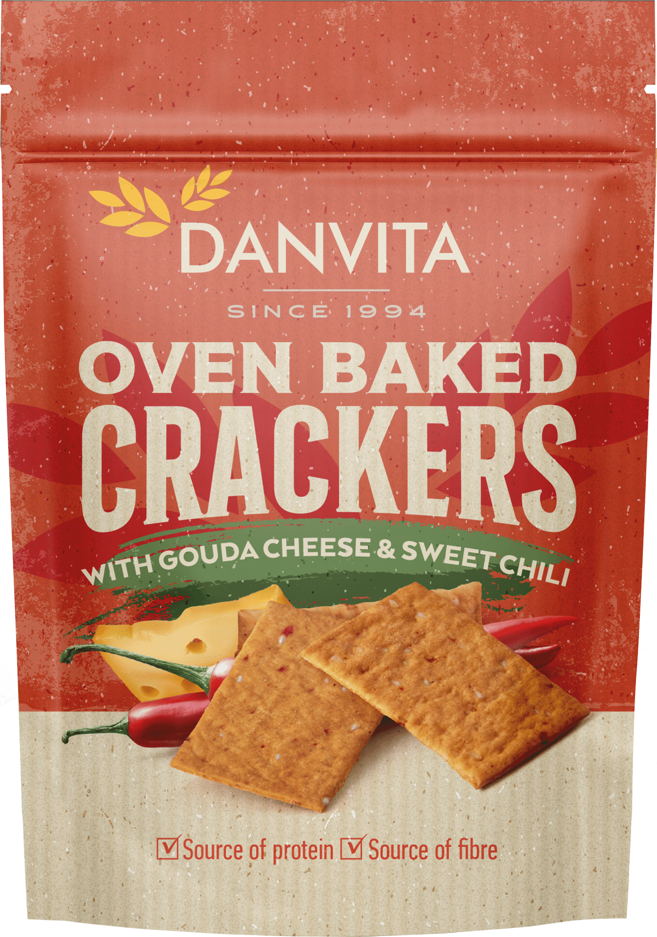 DANVITA Oven Baked Crackers with Gouda Cheese & Sweet Chili 100g