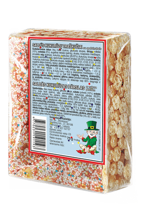 Ingredients: Toffee mass (sugar, glucose syrup, WHEY powder (10%), BUTTER (5%), vegetable fat (palm), salt, flavorings, emulsifier SOY lecithin, corn chips (28%) (corn grits, rice grits, water, salt), colorants (colored peas) (25.33%) (sugar, WHEAT/corn starch, glucose syrup, colorants (E100, E101, E120, E131, E172), vegetable oil (coconut, rapeseed, glazing agent (white beeswax)), glucose syrups, water. May contain ALMONDS, HAZELNUTS, CASHEW NUTS, PEANUTS, SESAME, GLUTEN, MILK (INCLUDING LACTOSE), EGGS and Traces of SOY products.
