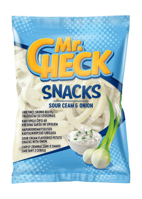 $199Unit priceUnavailableMr. CHECK Snacks Sour Cream & Onion Flavor Puffed Potato Chips 50g
