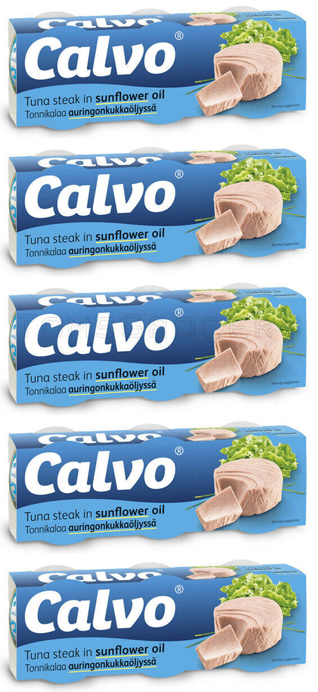 Very low stock (1 unit)$5999Unit priceUnavailable5 CALVO Tuna Steak in Sunflower Oil 240g 8.5oz (15 tins)