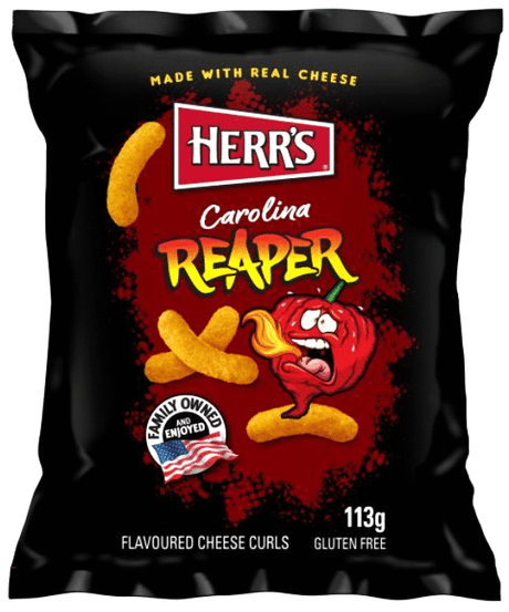 Low stock (8 units)$599Unit priceUnavailableHERR'S CAROLINA REAPER Flavor Cheese Curls Puffed Snacks 113g