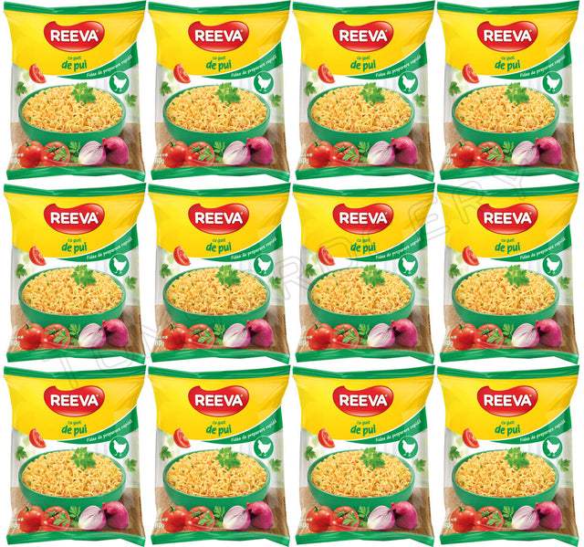 12 REEVA Chicken Flavor Instant Ramen Noodle Soup Snacks (Rollton) 60g 2.2oz