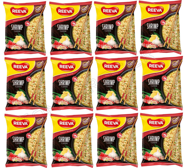 12 REEVA SHRIMP Flavor Instant Ramen Noodle Soup Snacks (Rollton) 60g