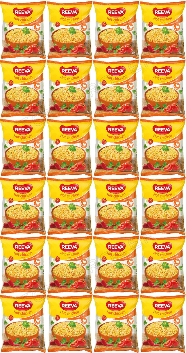 24 REEVA HOT CHICKEN Flavor Instant Ramen Noodle Soup Snacks (Rollton) 60g 2.2oz