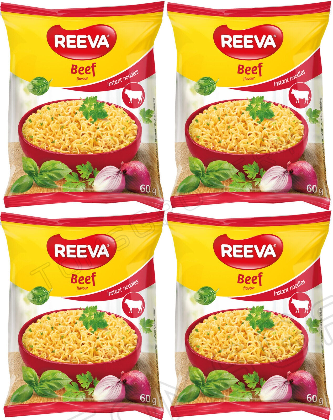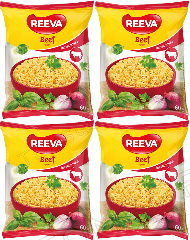 4 REEVA BEEF Flavor Instant Ramen Noodle Soup Snacks (Rollton) 60g 2.2oz
