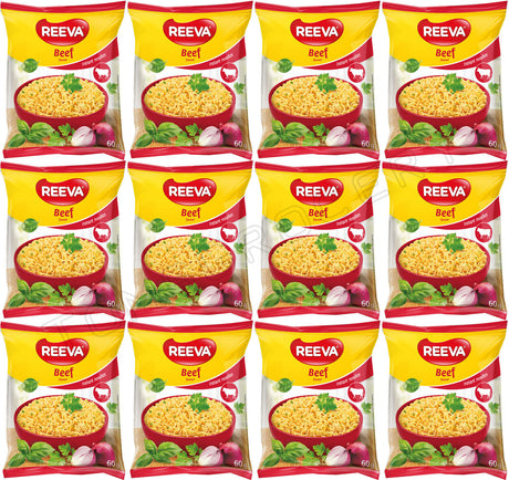 Low stock (10 units)$2199Unit priceUnavailable12 REEVA BEEF Flavor Instant Ramen Noodle Soup Snacks (Rollton) 60g 2.2oz