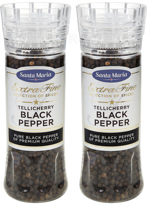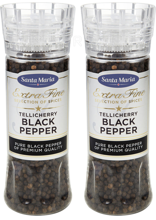 2 SANTA MARIA TELLICHERRY BLACK PEPPER Premium Quality XXL Grinders 210g 7.4oz