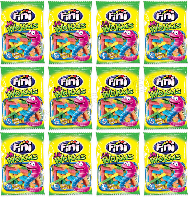 12 FINI JELLY WORMS Sugar Coated Gummies Candies Sweets European Snacks 90g
