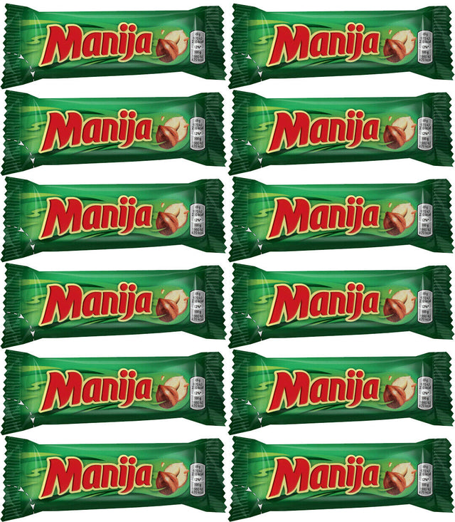 12 MANIJA Milk Chocolate Bars with Hazelnut & Rice Crisps Party Sweets 50g 1.8oz