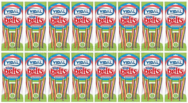 16 VIDAL Sour Sugar Coated Rainbow Belts Gummy Candy Sweets Bags 90g 3.2oz