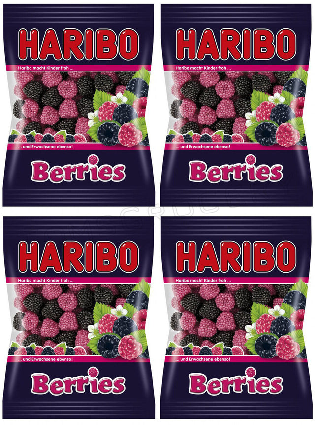 4 HARIBO BERRIES Raspberry & Blueberry Flavor Gummy Candy Sweets 100g 3.5oz