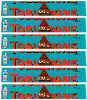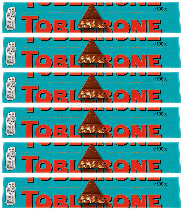 6 TOBLERONE CRUNCHY ALMONDS Swiss Chocolate Bars European Sweets 100g 3.5oz