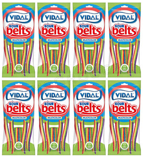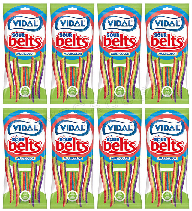 8 VIDAL Sour Sugar Coated Rainbow Belts Gummy Candy Sweets Bags 90g 3.2oz
