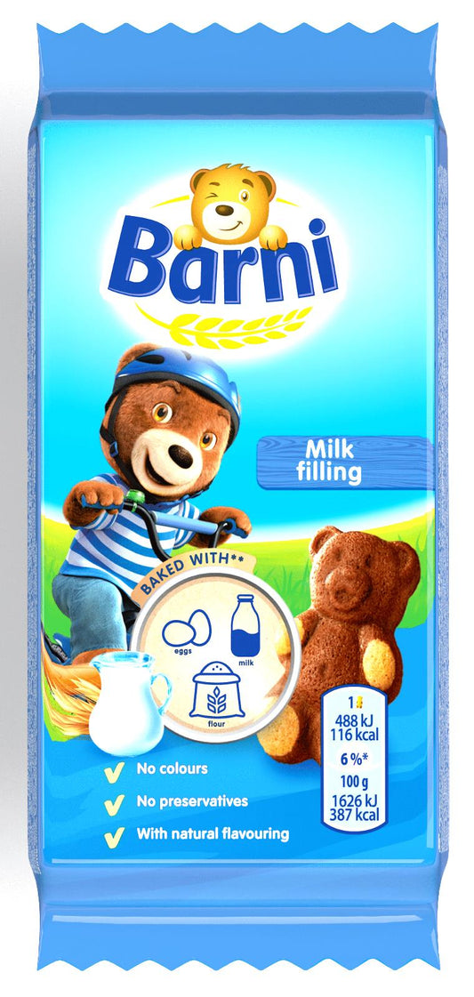 BEAR BARNI Soft Sponge Biscuit Cakes Treats Sweets with Milk Filling 24x 30g