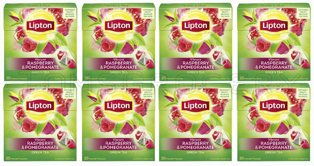 8 LIPTON RASPBERRY & POMEGRANATE Flavor Green Tea Boxes (160 Servings Total)