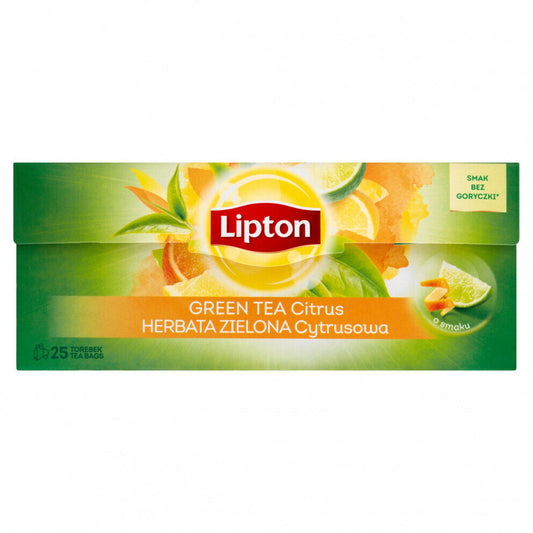 LIPTON CITRUS Flavored Green Tea Lemon, Lime & Orange Flavor 25 Teabags Box