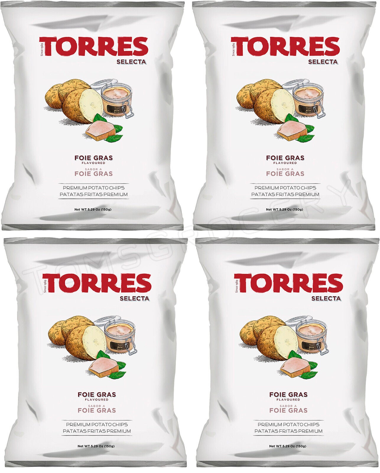 4 TORRES FOIE GRAS Flavor Premium Potato Chips Bags European Snacks 150g 5.29oz