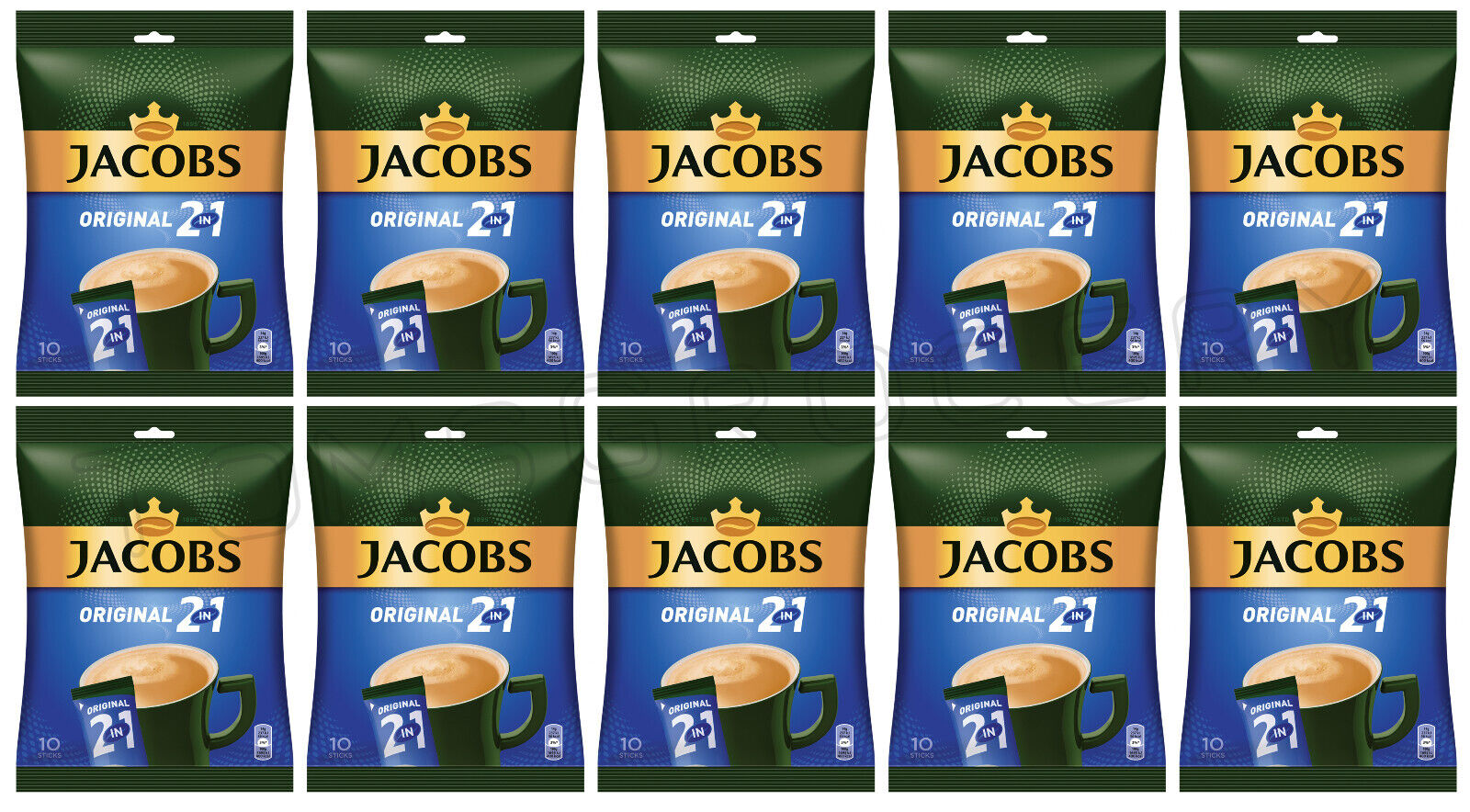 10 JACOBS Original 2in1 Instant Coffee Sticks Bags (100 servings total) 140g