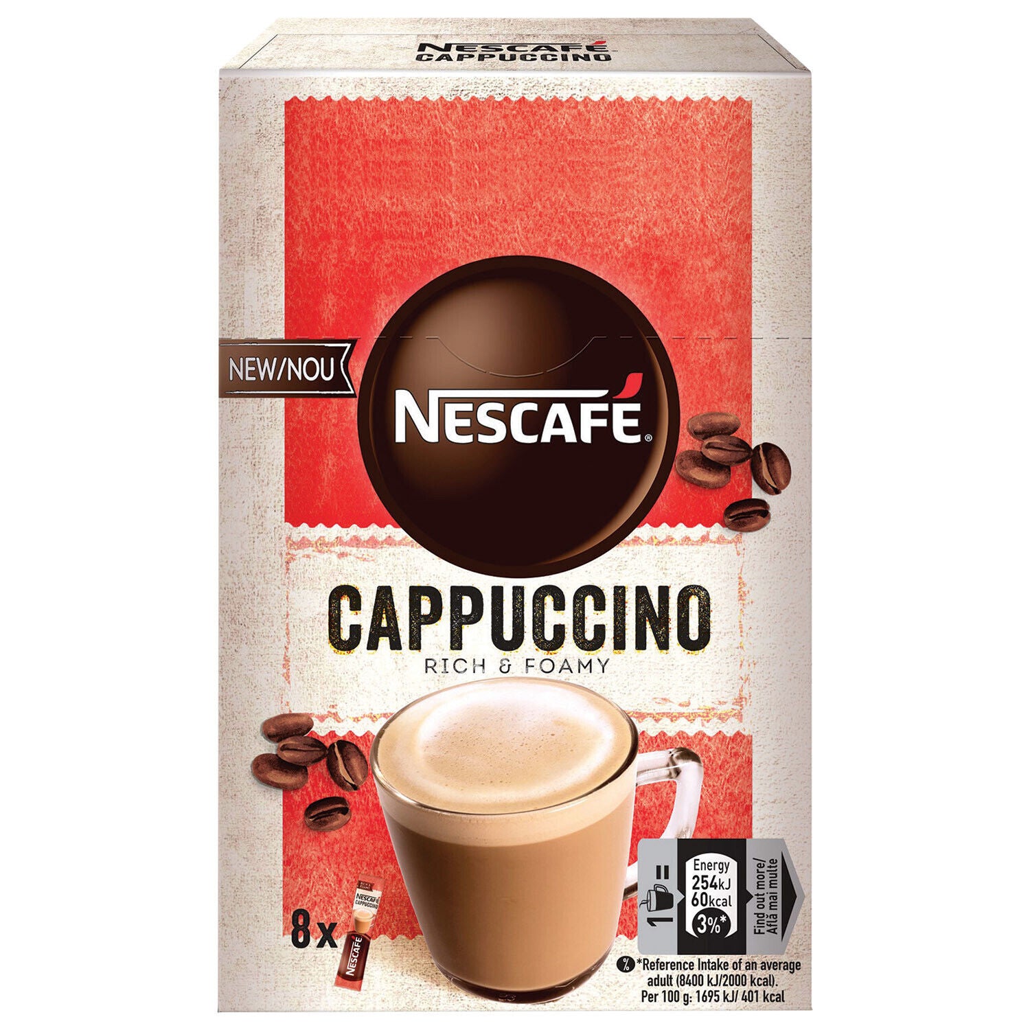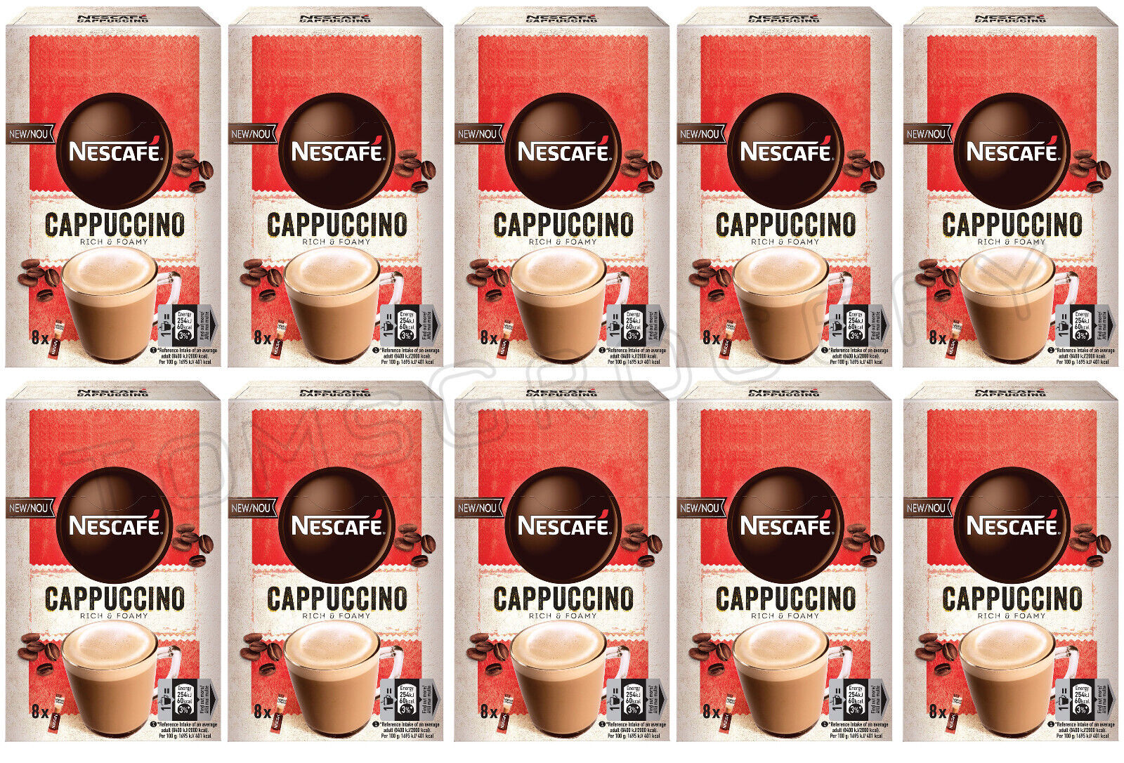 10 NESCAFE CAPPUCCINO Foamy Instant Coffee Drink Boxes 120g 4.2oz (80 servings)