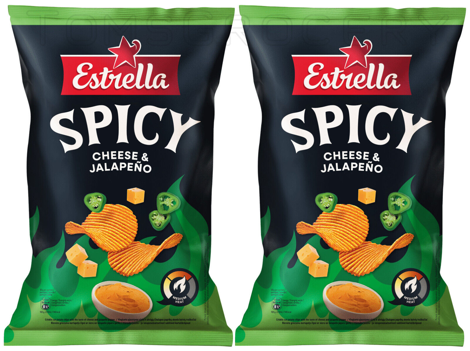 2 ESTRELLA SPICY Cheese & Jalapeno Flavor Potato Chips Snacks Bags 115g 4oz