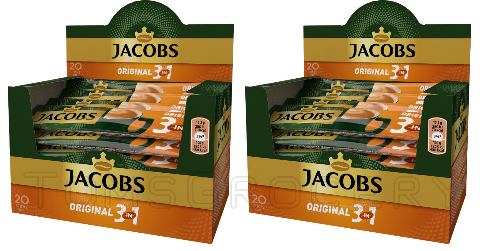 2 JACOBS Original 3in1 Instant Coffee Sticks Boxes (40 servings)