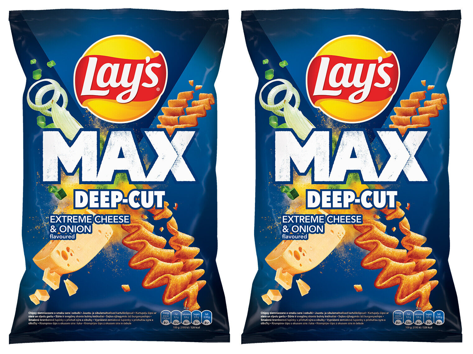 2 LAYS MAX Deep Cut Extreme Cheese & Onion Flavor Potato Chips Snacks 120g 4.2oz