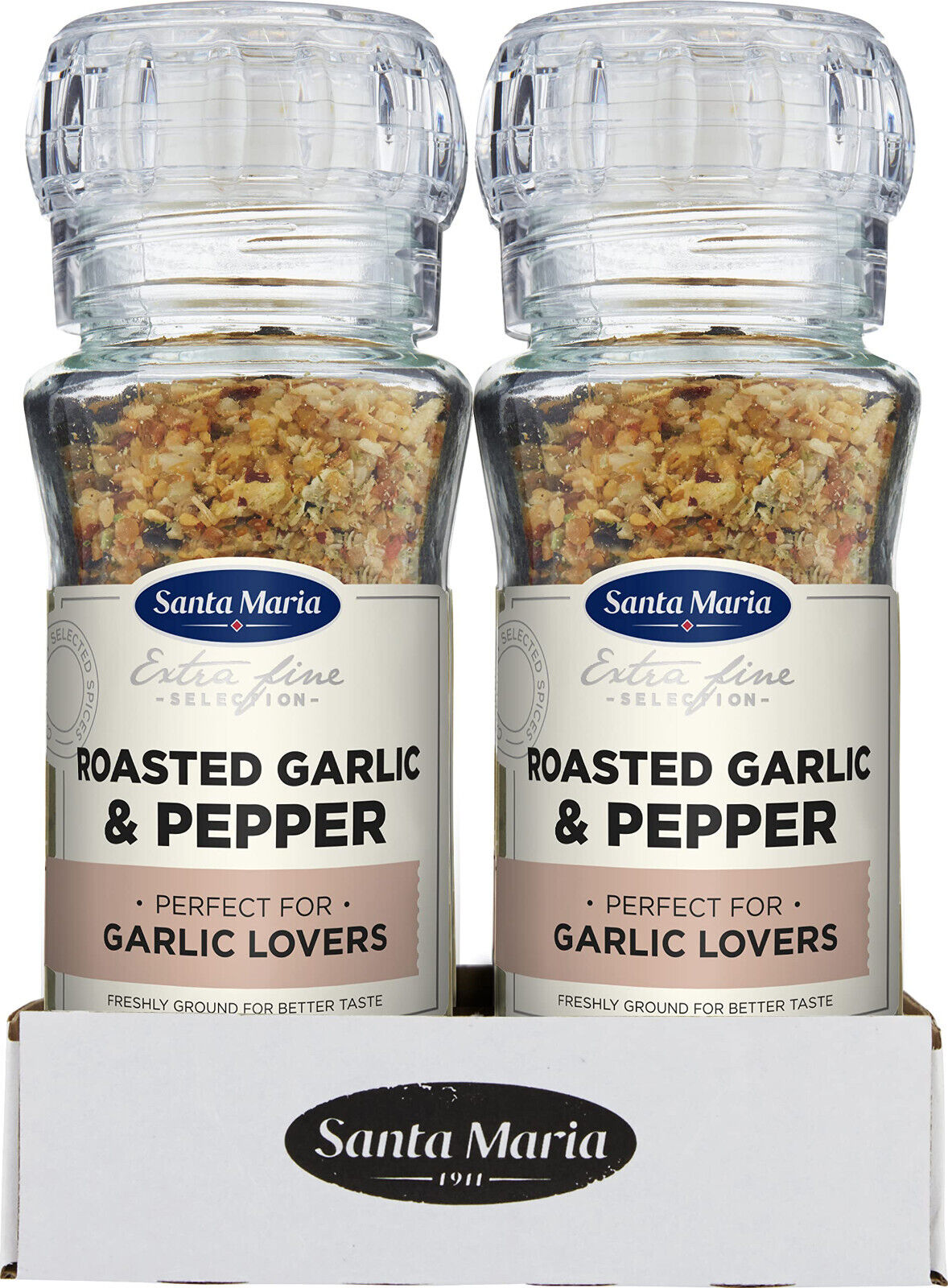 2 SANTA MARIA ROASTED GARLIC & PEPPER Spice Mix Grinder For Meat & Pasta 80g