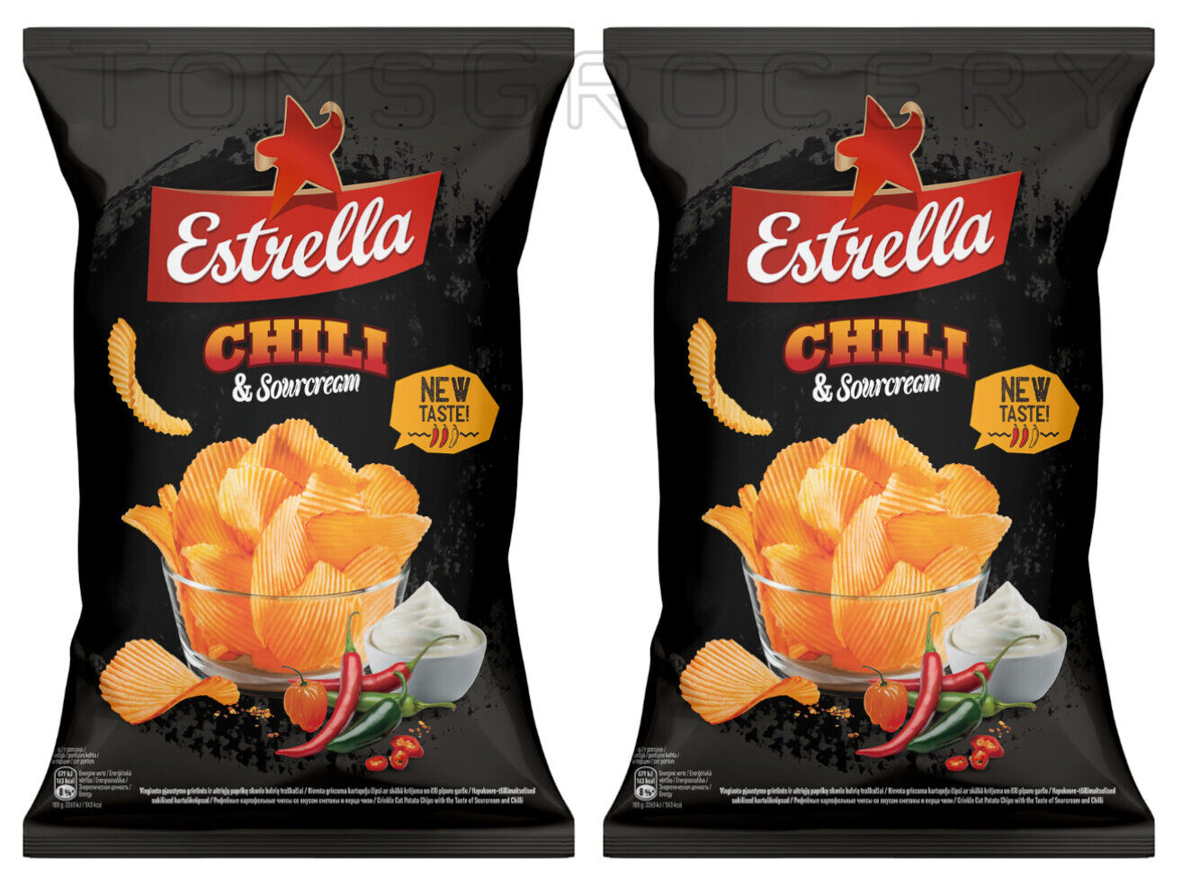 2 x ESTRELLA CHILI & SOUR CREAM Flavour Potato Chips European Snacks 130g
