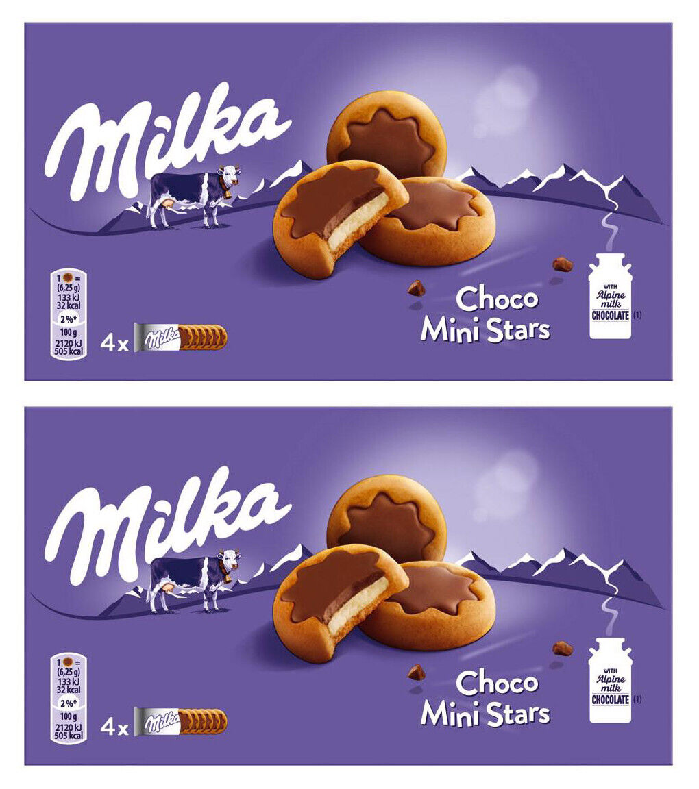 2 MILKA CHOCO MINI STARS Cookies with Milk Chocolate Sweets Snacks 150g 5.3oz