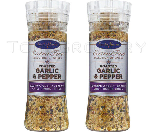 2 SANTA MARIA Roasted Garlic & Pepper Spice Mix Large Grinder 265g 9oz