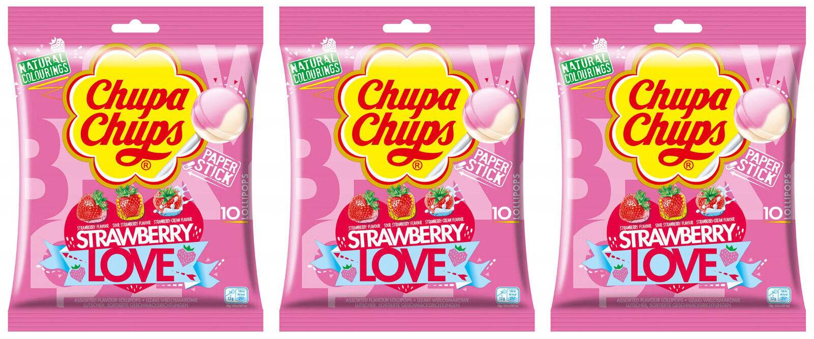 3 CHUPA CHUPS STRAWBERRY LOVE Assorted Lollipops Party Sweets Candy Bags 120g