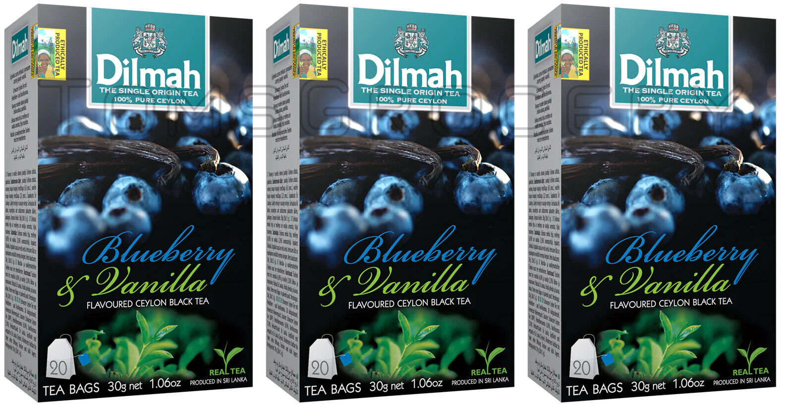 3 DILMAH BLUEBERRY & VANILLA Flavor Ceylon Black Tea Sri Lanka (60 servings)